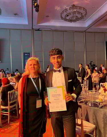 Our Managing Director, Owais Iqbal, won the a European Leadership Award whilst we represented the UK competing at Europe's largest Entrepreneurial Event, Gen E 2023. At the age of 16, this exemplified his purpose driven mindset being pivotal in supporting the team's successes.